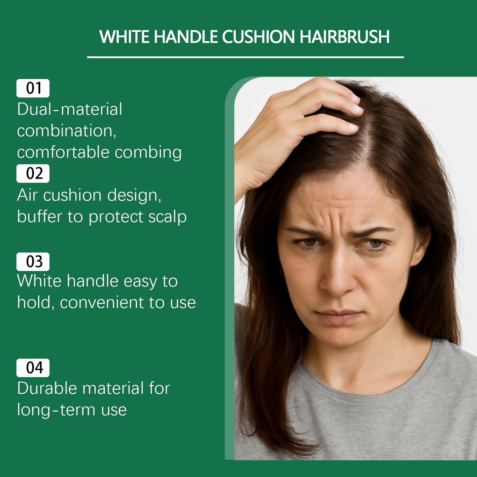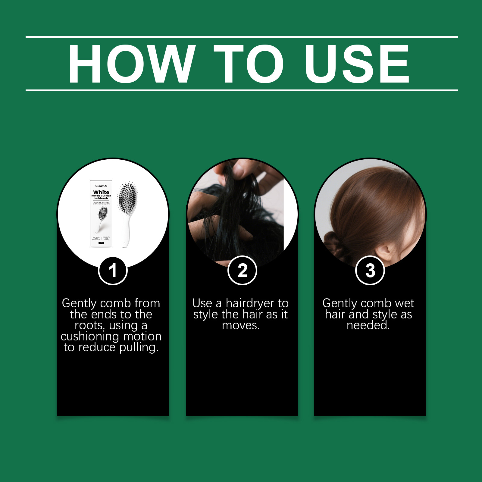 Air cushion design: Provides gentle scalp massage and reduces hair breakage during brushing
