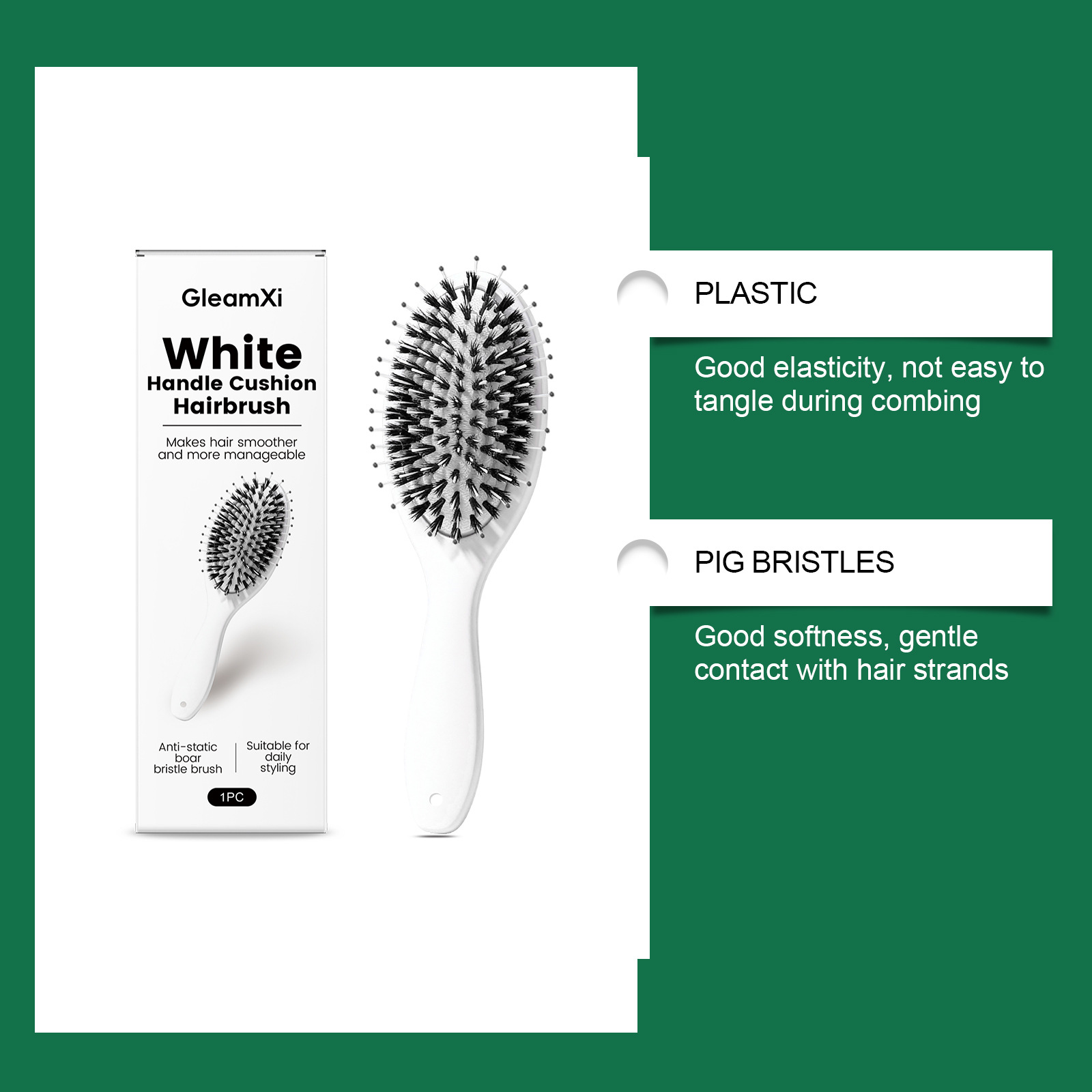 Nylon bristles: Effectively detangles hair and adds natural shine